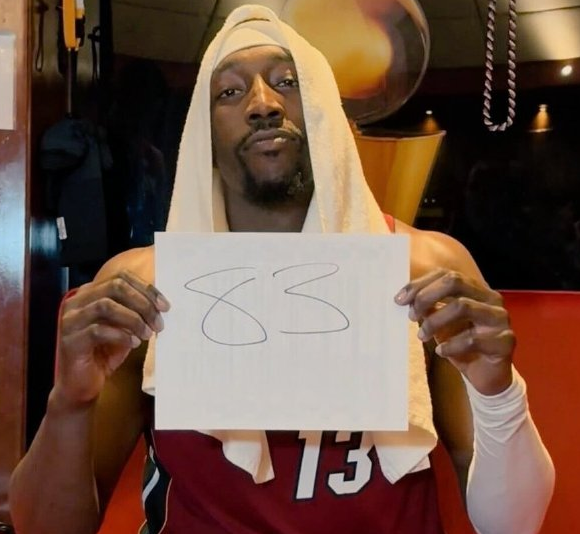 今天的比赛中,热火球员阿德巴约全场43投20中,罚球43罚36中,狂砍83分9篮板3助攻,不仅刷新个人得分记录,也刷新科比的81分,成为NBA历史第二高得分记录。